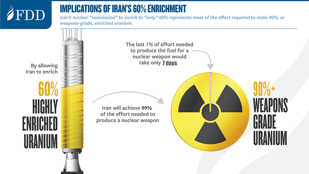 핵무기를 만들 수 있는 90% 농축 우라늄은 60%가 있다면 어렵지 않게 만들 수 있다